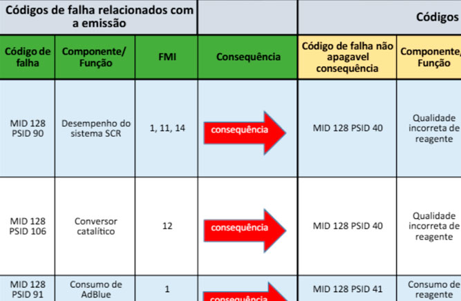 Pode ocorrer redução automática de potência e, em casos graves, bloqueio total do veículo. O sistema SCR é obrigatório por lei e falhas podem gerar multas ambientais além de danos ao motor.